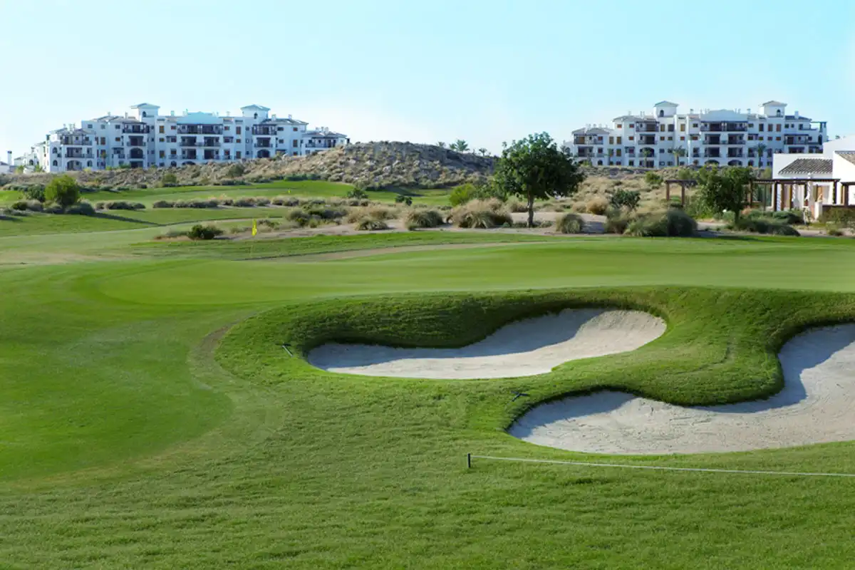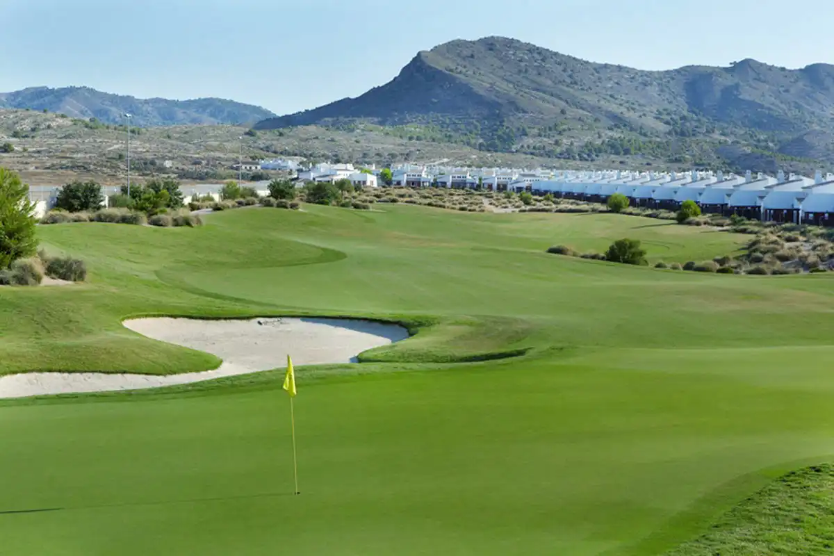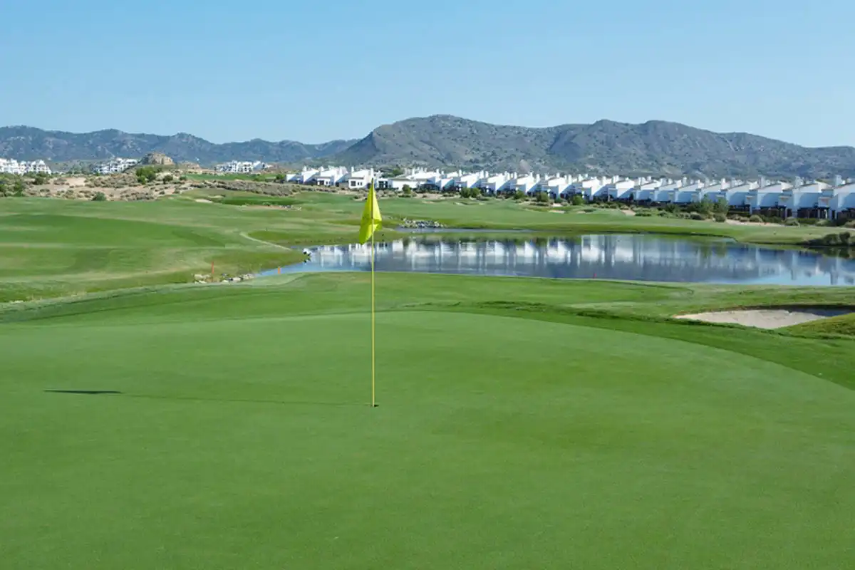 The course features numerous "crowned" greens surrounded by large mown chipping areas. This design feature presents players with numerous interesting short-game options around the greens and imaginative shot-making will be rewarded. El Valle Golf features clusters of smaller, more subtly shaped bunkers. Moreover, El Valle Golf takes full advantage of its desert setting with numerous holes playing adjacent to naturally existing rock-outcroppings and ridges. To further enhance the desert theme, the golf course is landscaped with many species of native shrubs, grasses and other desert plants. Complemented with a number of water features, including two lakes and two elaborate stream and waterfall systems. El Valle is sure to be a beautiful, yet unique stop along the Murcia Golf Experience.