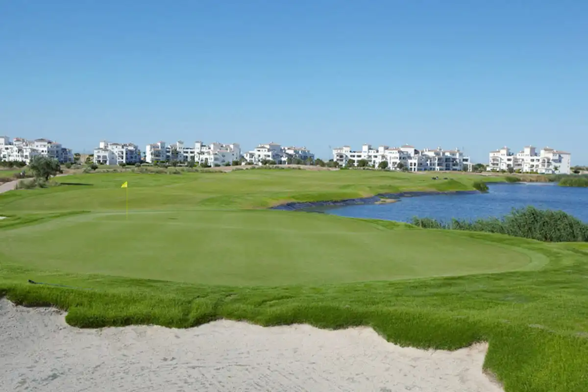 The Hacienda Riquelme Golf golf course weaves is way through and around groves of olive trees, wildflower meadows, and large lakes. Taking advantage of the site's larger scale, the Hacienda Riquelme Golf features wider-than-average fairways allowing players plenty of room to play while creating numerous strategic options. The boldly contoured greens are sure to be the most talked about feature of the course. Many of the greens are broken into several sections by strong elevation changes making it crucial for golfers to play to the correct section of the green in order to set up the easiest putt possible. Additionally, the greens also feature numerous subtle random contours and rolls further complicating putting.
